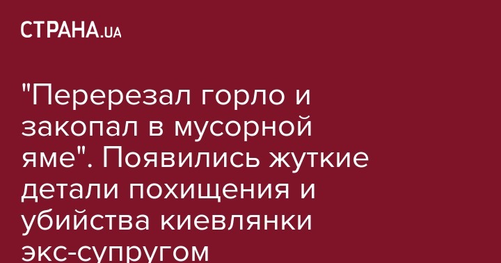 Экс-супруг жительницы Киева Елены Лисовой назначил ей встречу якобы для разговора о ремонте, однако после того, как она приехала, вместе с другом избил ее и повез в лес, где перерезал ей горло и закопал в мусорной яме. Об этом сообщает пресс-служба полиции столицы в среду.