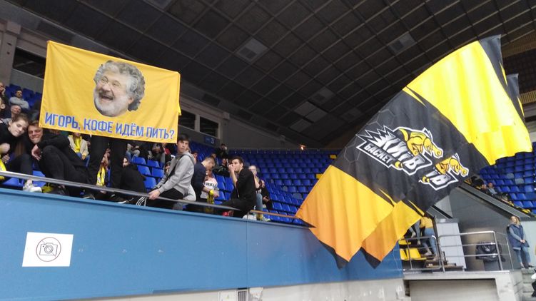 Фанаты киевлян вывесили напротив VIP-ложи, где присутствовал Коломойский, банер адресованный бизнесмену: "Игорь, кофе идем пить?"