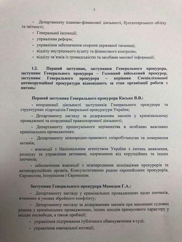 Генеральный прокурор Украины Руслан Рябошапка распределил полномочия в ведомстве, отставив за собой департамент процессуального руководства расследованиями уголовных дел в Государственном бюро расследований.