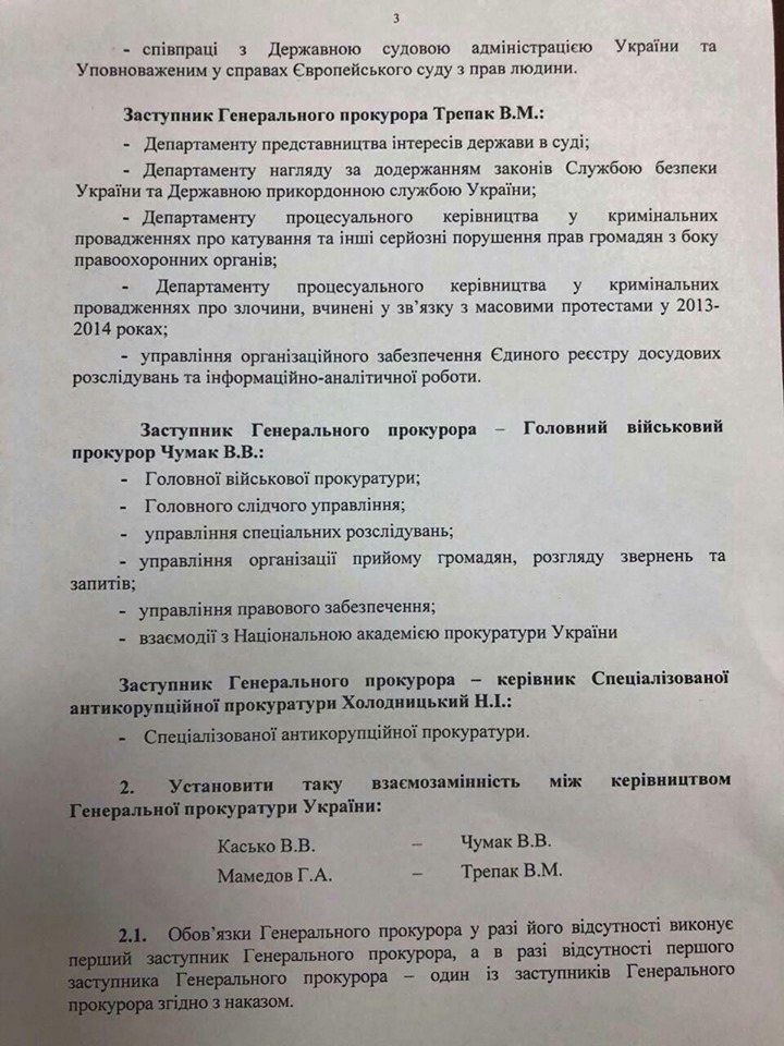 "Генеральный прокурор Рябошапка определился-таки с распределением полномочий в своем офисе. Но самое важное тут, что департамент процессуального руководства расследованиями уголовных дел в Государственном бюро расследований, мсье Рябошапка оставил за собой. Не доверил никому", написала Лукаш.