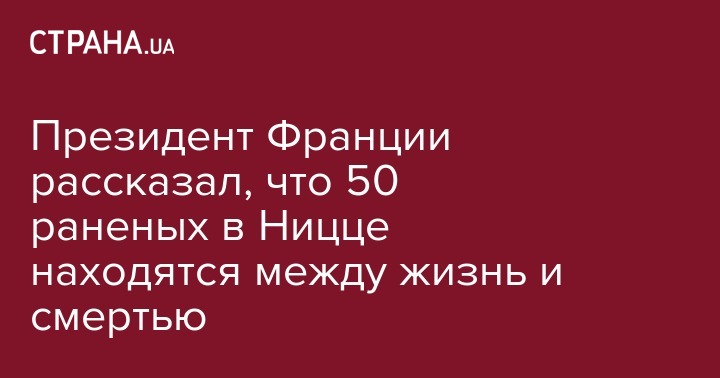 Минимум 50 из тех, кто пострадал в результате теракта в Ницце, находятся в критическом состоянии, заявил президент Франции Франсуа Олланд.