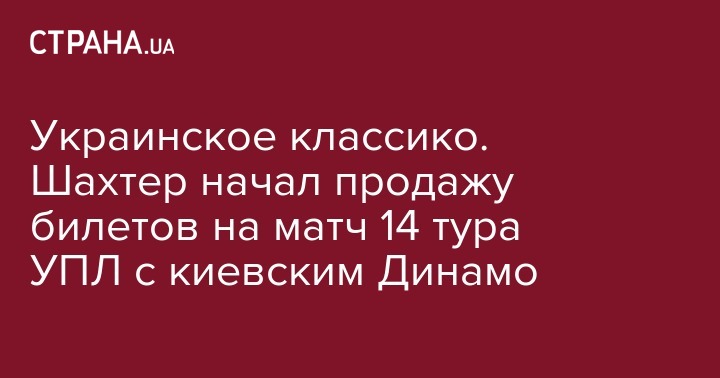 Украинское классико. Шахтер начал продажу билетов на матч 14 тура УПЛ с киевским Динамо