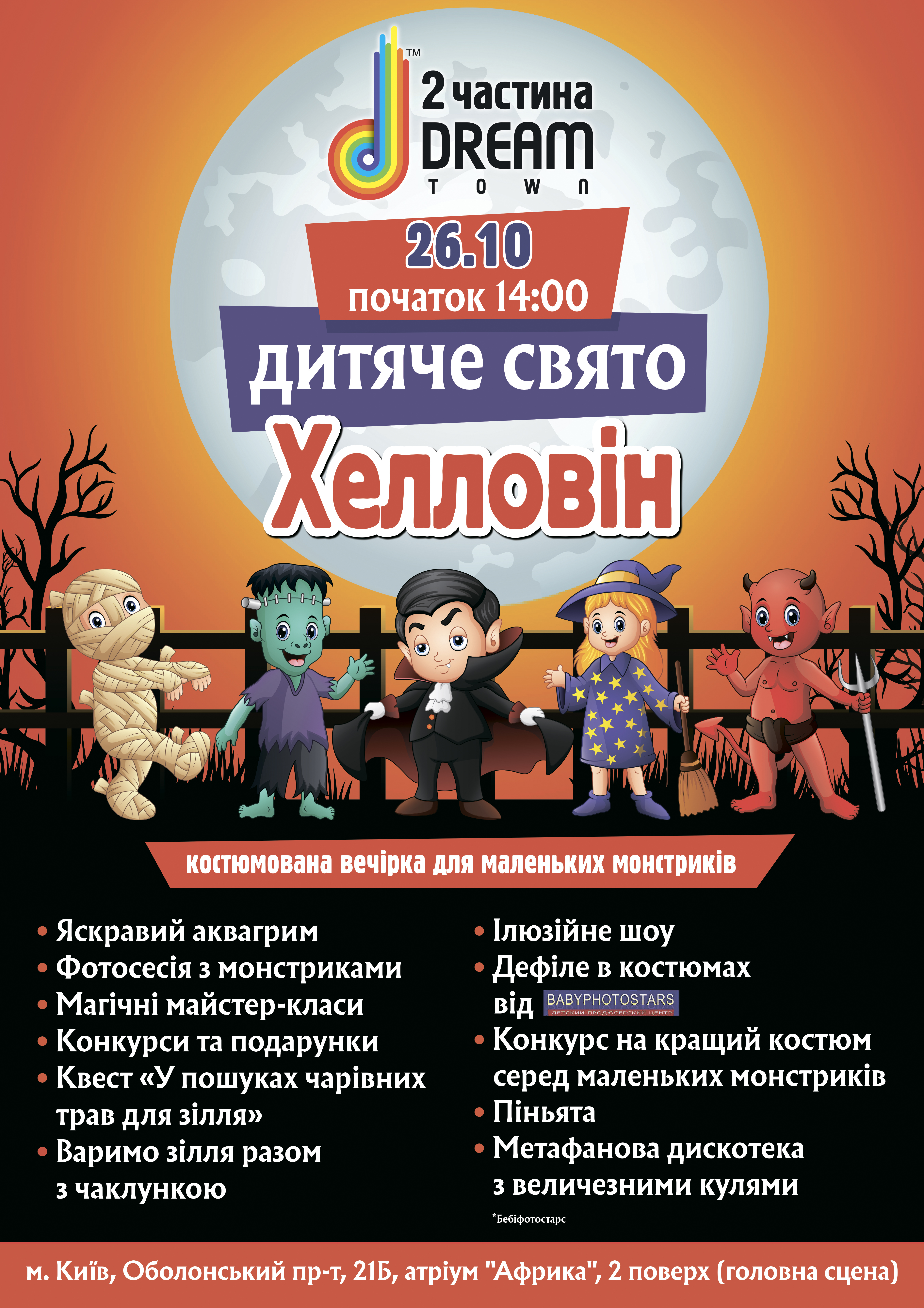 Детский праздник: ТРЦ DreamTown, вторая часть, Оболонский проспект, 21б, 26 октября с 14:00 до 19:00