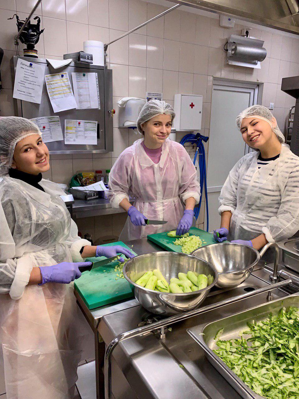 По информации "Страны", ребята присоединились к одной из точек питания для пожилых людей "Обед без бед" от проекта "Жизнелюб" (сооснователь бизнесмен Гарик Корогодский). Их в столице 13 в разных районах. Каждый день там кормят бесплатно горячими обедами. Еду готовят рестораны, расположенные поблизости, а на пункте работают волонтеры. На сей раз обед был приготовлен на кухне "Новопечерской школы".