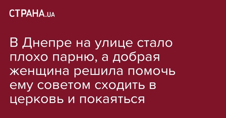 В Днепре на улице стало плохо парню, а добрая женщина решила помочь ему советом сходить в церковь и покаяться