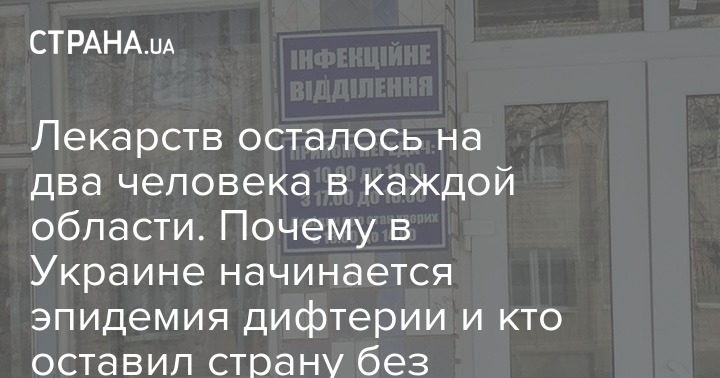 Один из крупнейших мировых производителей антидифтерийной сыворотки - Россия. Однако в силу лозунга "Геть від Москви" МОЗ несколько лет назад перестал закупать лекарство в РФ.