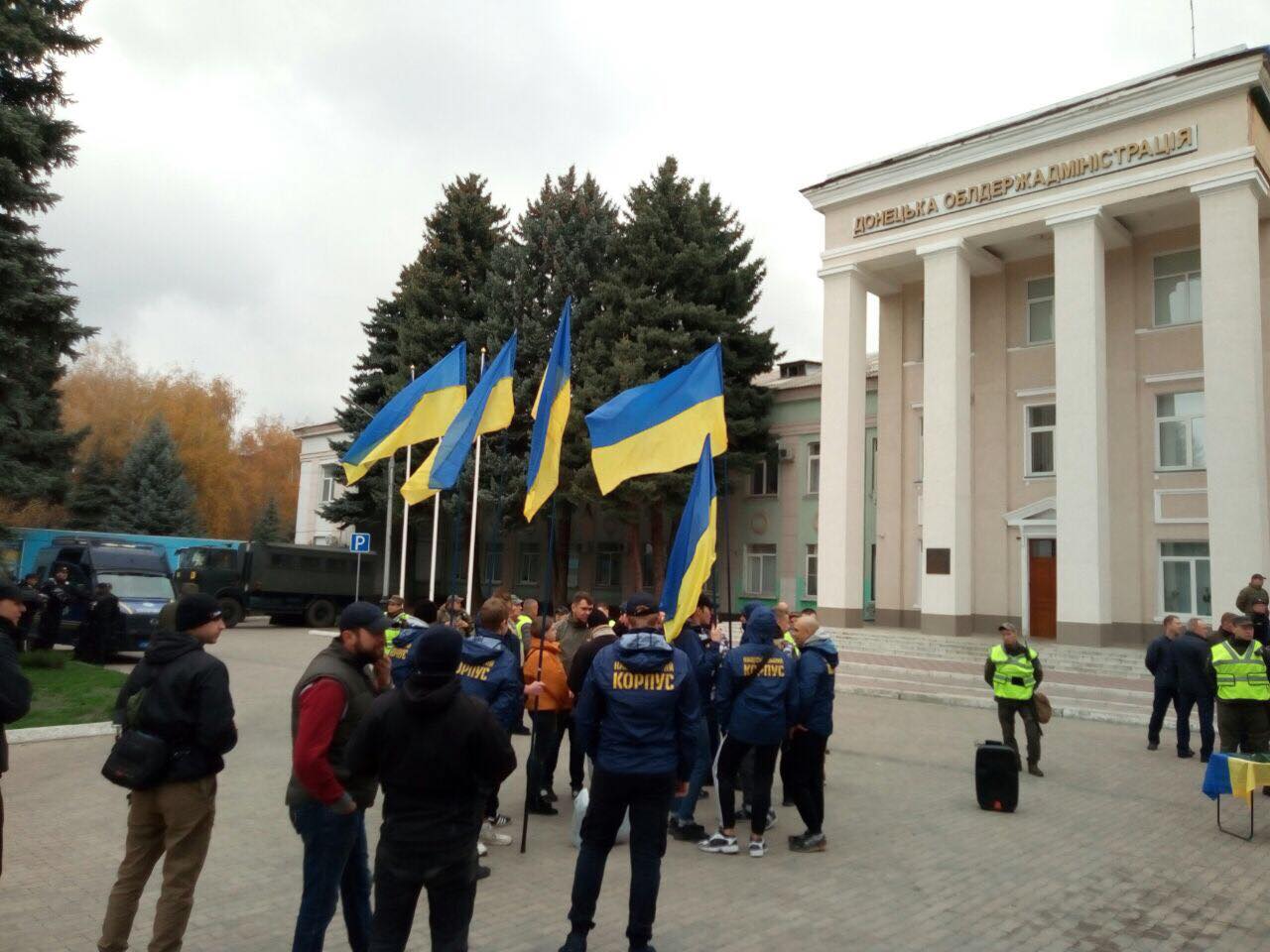 В Краматорске Донецкой области пару десятков человек из Национального корпуса собрались сегодня под зданием Донецкой областной администрацией. Об этом сообщает корреспондент "Страны".