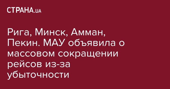 Из-за убыточности авиакомпания отменит рейсы в Ригу, Минск, Амман и Пекин. Частота полетов по среднемагистральным маршрутам из Киева в Европу и Азию будет сокращена до одного раза в день.