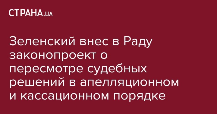 В пятницу, 25 октября, президент Украины Владимир Зеленский внес в Верховную Раду законопроект, который должен усовершенствовать процесс пересмотра судебных решений в апелляционном и кассационном порядке. Об этом свидетельствует информация на сайте парламента