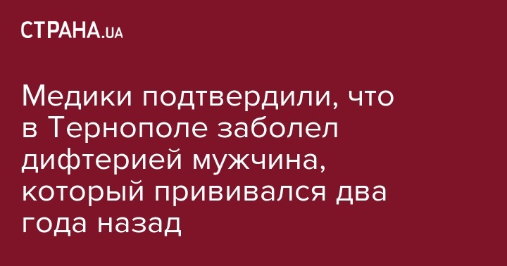 Медики подтвердили, что в Тернополе заболел дифтерией мужчина, который прививался два года назад