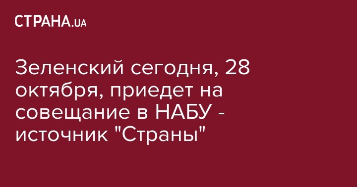Зеленский сегодня, 28 октября, приедет на совещание в НАБУ - источник "Страны"