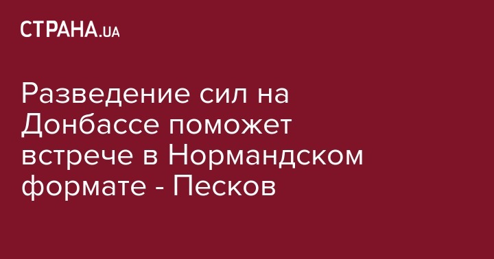 Разведение сил на Донбассе поможет встрече в Нормандском формате - Песков