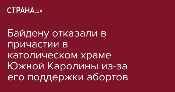 Католическая церковь Святого Антония в Южной Каролине отказала экс-вице-президенту США и действующему кандидату в президенты Джо Байдену в причастии, потому что он поддерживает аборты. Об этом сообщает местное издание The South Carolina Morning News.