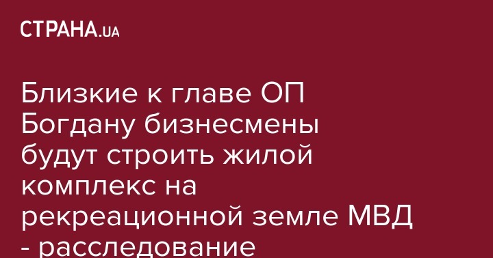 Близкие к главе ОП Богдану бизнесмены будут строить жилой комплекс на рекреационной земле МВД - расследование