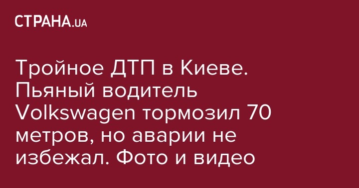 Тройное ДТП в Киеве. Пьяный водитель Volkswagen тормозил 70 метров, но аварии не избежал. Фото и видео