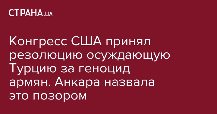 На фоне резкого ухудшения отношений между США и Турцией, Конгресс США предпринял очередной шаг, который только усугубит раскол между странами-союзниками по НАТО. Палата представителей приняла резолюцию, в которой признается и осуждается геноцид армян в Османской империи.