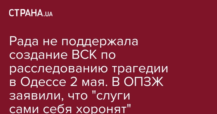 Рада не поддержала создание ВСК по расследованию трагедии в Одессе 2 мая. В ОПЗЖ заявили, что "слуги сами себя хоронят"