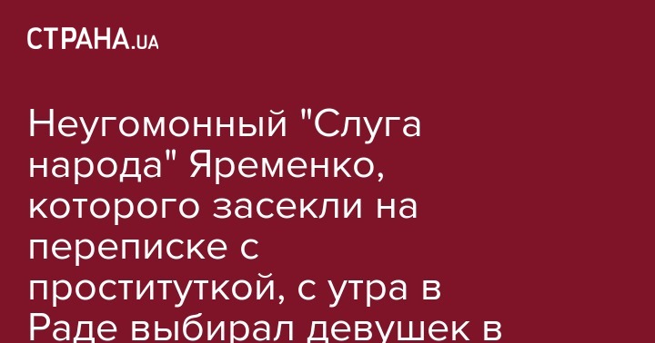 Сегодня также стало известно, что Яременко во время голосования в Раде снимал проститутку. В смартфоне нардепа были открыты два чата со знакомствами: "Сеть знакомств Мам…" (вероятно, речь про сайт Mamba - Ред.) и Loveeto. Яременко отреагировал на этот казус своим постом в соцсети, фактичеки подтвердив подлинность фото. Он заявив, что якобы специально "подстроил" провокацию для журналистов.
