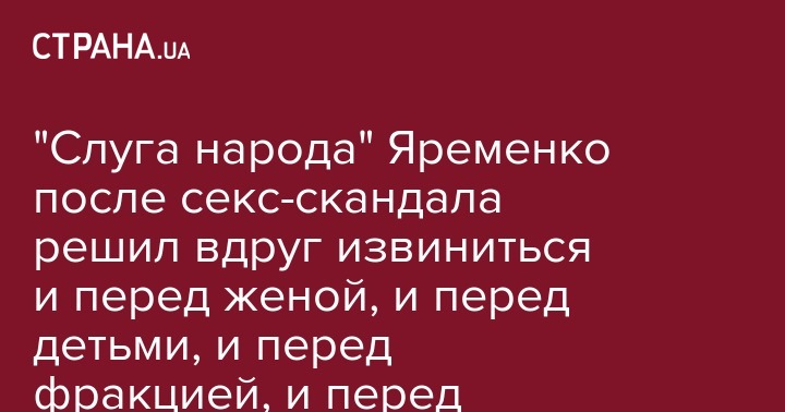 "Слуга народа" Яременко после секс-скандала решил вдруг извиниться и перед женой, и перед детьми, и перед фракцией, и перед президентом