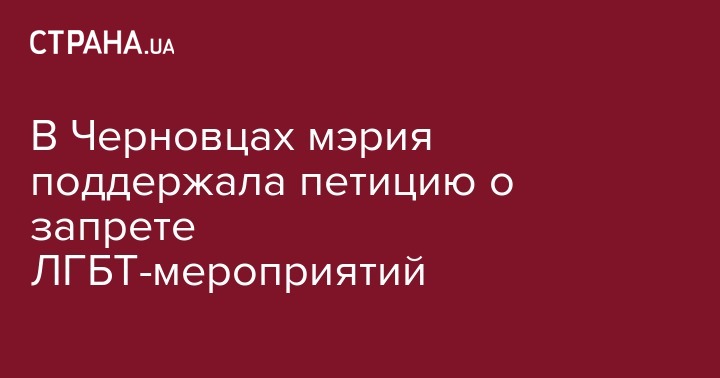 В Черновцах местные власти намерены запретить на территории города проведение любых ЛГБТ-мероприятий. Черновицкий городской совет сегодня поддержал соответствующую электронную петицию без обсуждений, сообщает УНИАН.