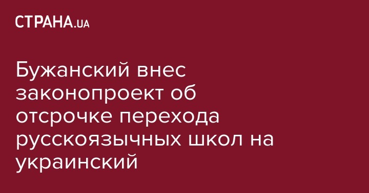 Об этом нардеп сообщил в своем телеграм-канале в четверг. Бужанский отмечает, что считает несправедливым, что русскоязычные школы должны использовать украинский язык уже в следующем году, а все остальные школы только с 2023 года. По его словам, данный законопроект призван устранить эту дискриминацию.