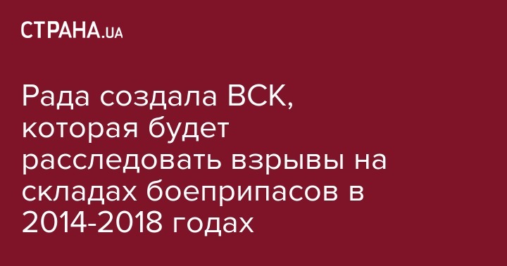 Верховная Рада создала временную следственную комиссию (ВСК) по вопросам расследования взрывов на складах боеприпасов в 2014-2018 годах. Об этом сообщает "Интерфакс-Украина".