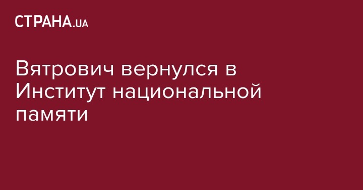 Бывший директор Института национальной памяти Владимир Вятрович вернулся на прежнее место работы в качестве спикера нового цикла "ИстФакт", который запускает учреждение. Об этом сообщает сайт организации.