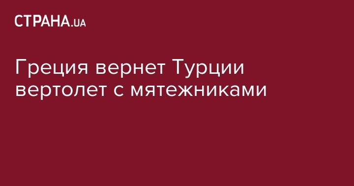 Греческое руководство планирует в ближайшее время вернуть турецким властям военный вертолет, который приземлился в Александруполисе с восемью сторонниками попытки переворота в Турции, заявила официальный представитель правительства Греции Ольга Геровасили, передает РИА "Новости".