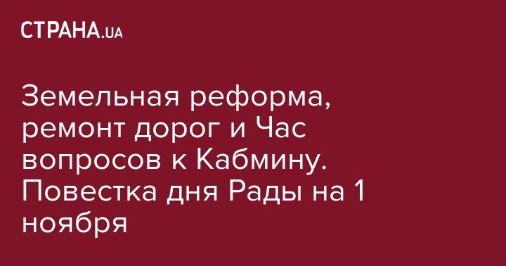 В Верховной Раде сегодня,1 ноября, состоится Час вопросов к правительству и кроме этого нардепы рассмотрят проект постановления о проведении парламентских слушаний по земельной реформе. Об этом свидетельствует план работы ВРУ на 1 ноября.