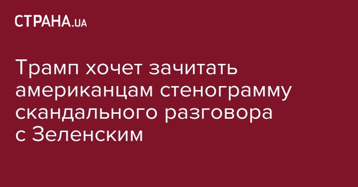 Президент США Дональд Трамп заявил о намерении прочитать американцам стенограмму телефонного разговора с президентом Украины Владимиром Зеленским. Об этом он рассказал в интервью изданию The Washington Examiner.