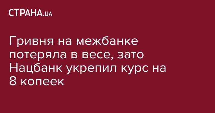 Курс гривни на межбанковском валютном рынке в пятницу снизился на 9 копеек, а Национальный банк Украины на 4 ноября укрепил гривню на 8 копеек. Об этом сообщает "Интерфакс-Украина".