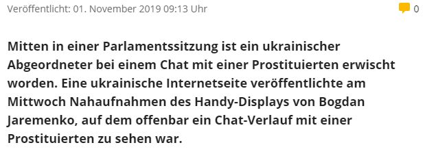 Рассказала о скандале и австрийская газета Salzburg 24: "Посреди парламентской сессии украинский депутат был пойман в чате с проституткой. На фотографиях видно, как Яременко спрашивал об условиях встречи. "100 долларов за час, 150 за два", - ответила его собеседница".