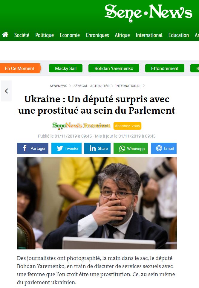 Обсуждают даже в Сенегале. О секс-скандале нардепа Яременко написали СМИ всего мира