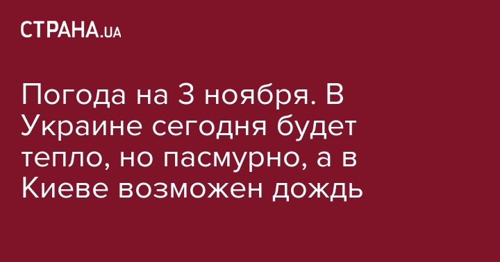 Сегодня, 3 ноября в Украину пожалуют воздушные массы с Атлантики, которые принесут тепло, ветер и нагонят тучи. Об этом сообщает в своем Facebook синоптик Наталья Диденко.