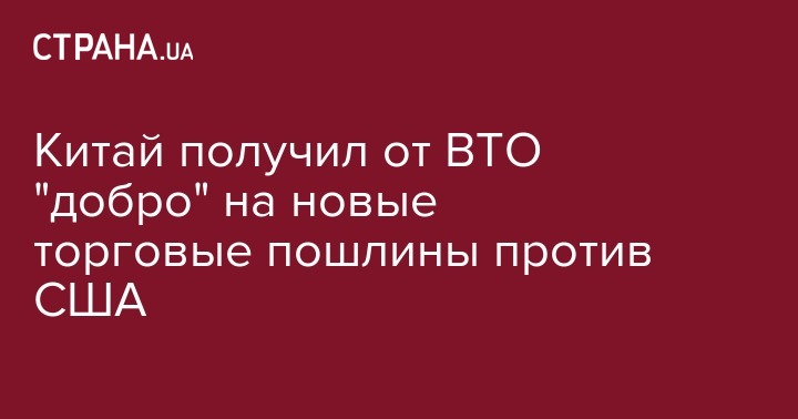 Китай получил от ВТО "добро" на новые торговые пошлины против США