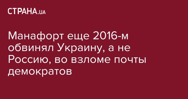 Бывший глава предвыборной кампании президента США Дональда Трампа Пол Манафорт еще летом 2016 года выдвинул идею об ответственности Украины, а не России, за взлом сервера руководящего органа Демократической партии.