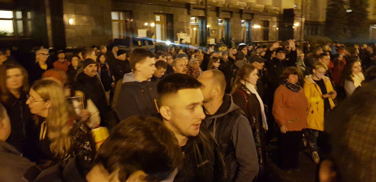 В большей степени на митинг собрались люди, возрастом от 25 лет, их насчитывается около 300 человек. Однако около 25% из них - это СМИ. Также среди участников акции была замечена бывшая и.о. главы Минздрава Ульяна Супрун и праворадикал Сергей Стерненко. Кроме тогою, мероприятие посетили бывший нардеп Игорь Луценко и глава "Центра противодействия коррупции" Виталий Шабунин. Охрану порядка обеспечивает полиция диалога, в составе не больше 20 человек. Под зданием "Будинок з химерами" установили экран с надписью "Год без Кати", звучит печальная инструментальная музыка.