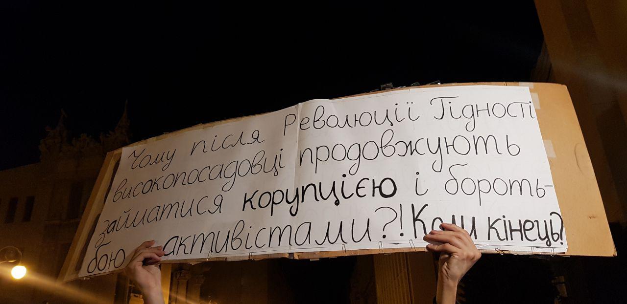 "Поменялась власть, новый прокурор, новое СБУ обнадежили нас, но никаких действий мы не видим и все заканчивается псевдобрифингом. Я приглашал на сегодняшнюю акцию президента, чтобы он помнил Катю, он помнил, что на активистов в нашей стране продолжают нападать, но он не пришел", - заявил он.