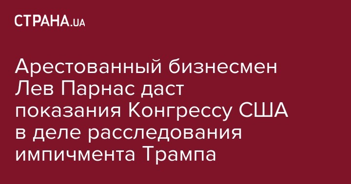 Арестованный в США бизнесмен Лев Парнас (выходец из Украины - Ред.), связанный с Рудольфом Джулиани, личным адвокатом президента Дональда Трампа, готов дать показания Палате представителей в рамках расследования импичмента президента Трампа.