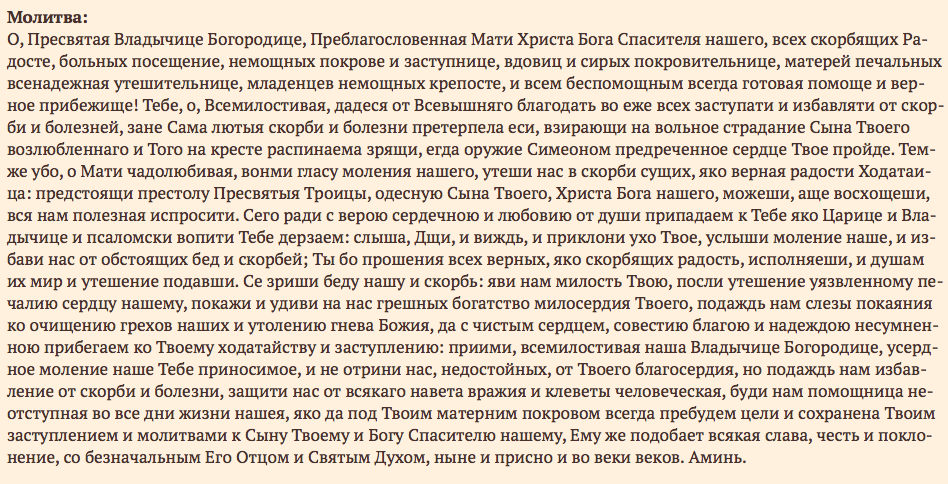 Всех скорбящих радость. Текст молитвы