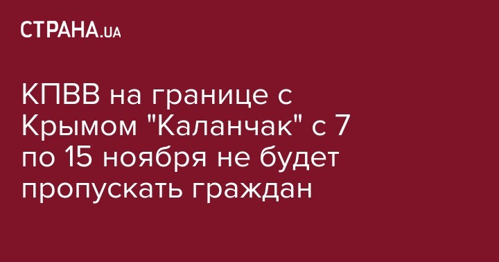 В связи с этим, в период с 7 по 15 ноября КПВВ "Каланчак" приостанавливает оформления граждан. При этом контрольные пункты "Чаплинка" и "Чонгар" продолжат работать в штатном режиме.