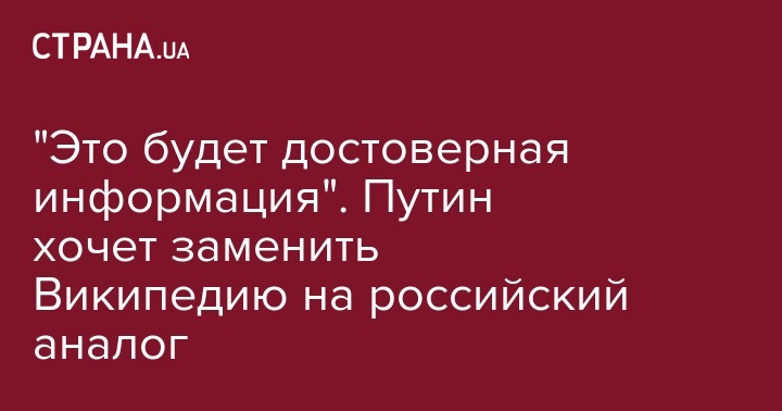 Президент РФ Владимир Путин заявил о необходимости заменить интернет-энциклопедию "Википедия" на российский аналог. Об этом сообщили журналисты кремлевского пула в своем Telegram-канале.