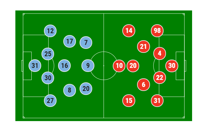 11 Атака Сити завершилась передачей в штрафную "горняков" с правого фланга, но зацепиться за мяч там нынешним чемпионам Англии не удалось. Выбегая в контратаку Патрик красиво перебросил мяч через Де Брёйне. Вынужден был нарушать правила против нашего бразильца игрок сборной Бельгии.