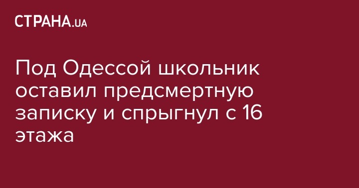 Под Одессой школьник оставил предсмертную записку и спрыгнул с 16 этажа
