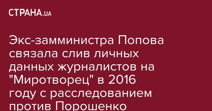 Экс-замминистра Попова связала слив личных данных журналистов на "Миротворец" в 2016 году с расследованием против Порошенко