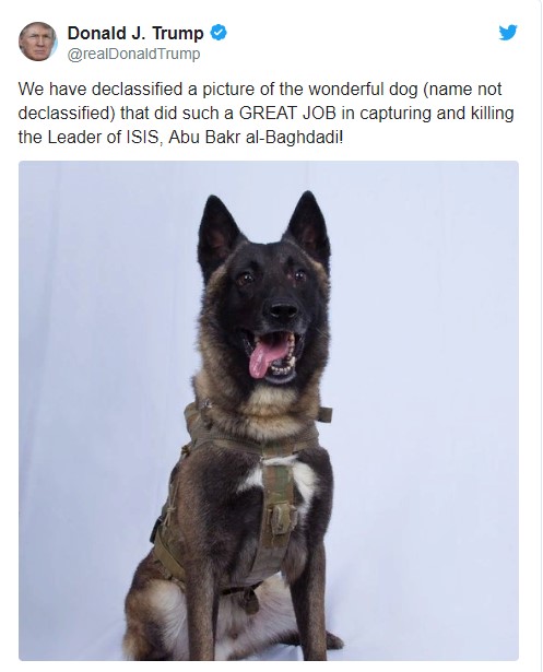 Трамп примет в Белом доме хвостатого Конана, раненого при ликвидации главаря ИГИЛ аль-Багдади. Фото