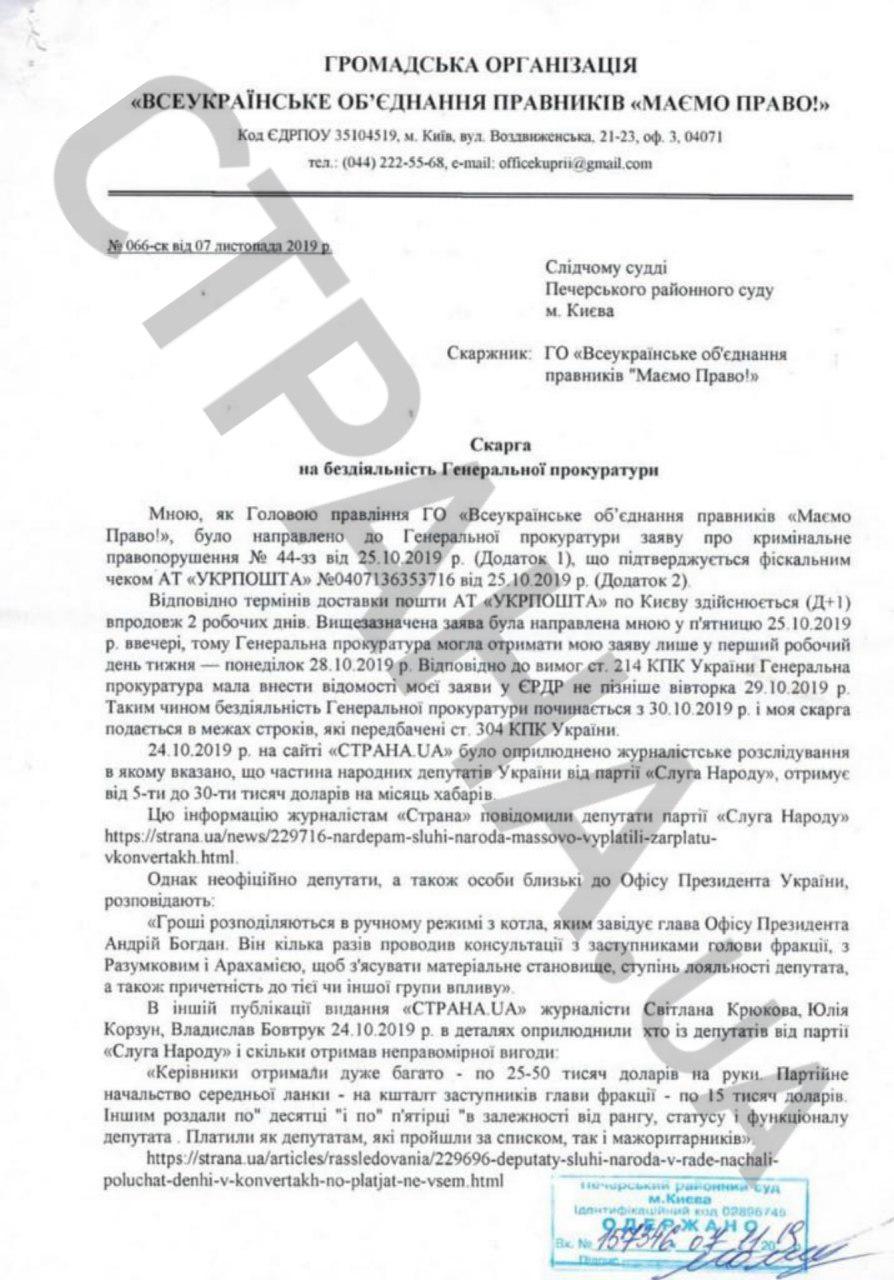 На генпрокурора Рябошапку подали жалобу за отказ расследовать получение зарплат в конвертах депутатами "Слуги народа"