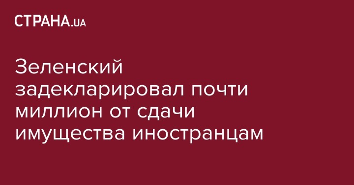 Зеленский задекларировал почти миллион от сдачи имущества иностранцам