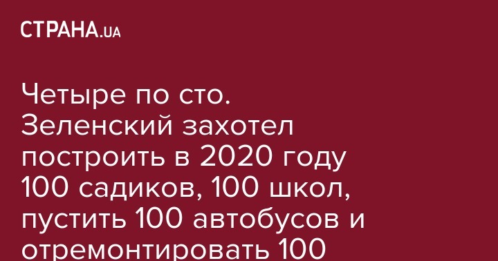 Четыре по сто. Зеленский захотел построить в 2020 году 100 садиков, 100 школ, пустить 100 автобусов и отремонтировать 100 стадионов