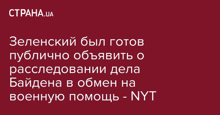 Зеленский был готов публично объявить о расследовании дела Байдена в обмен на военную помощь - NYT